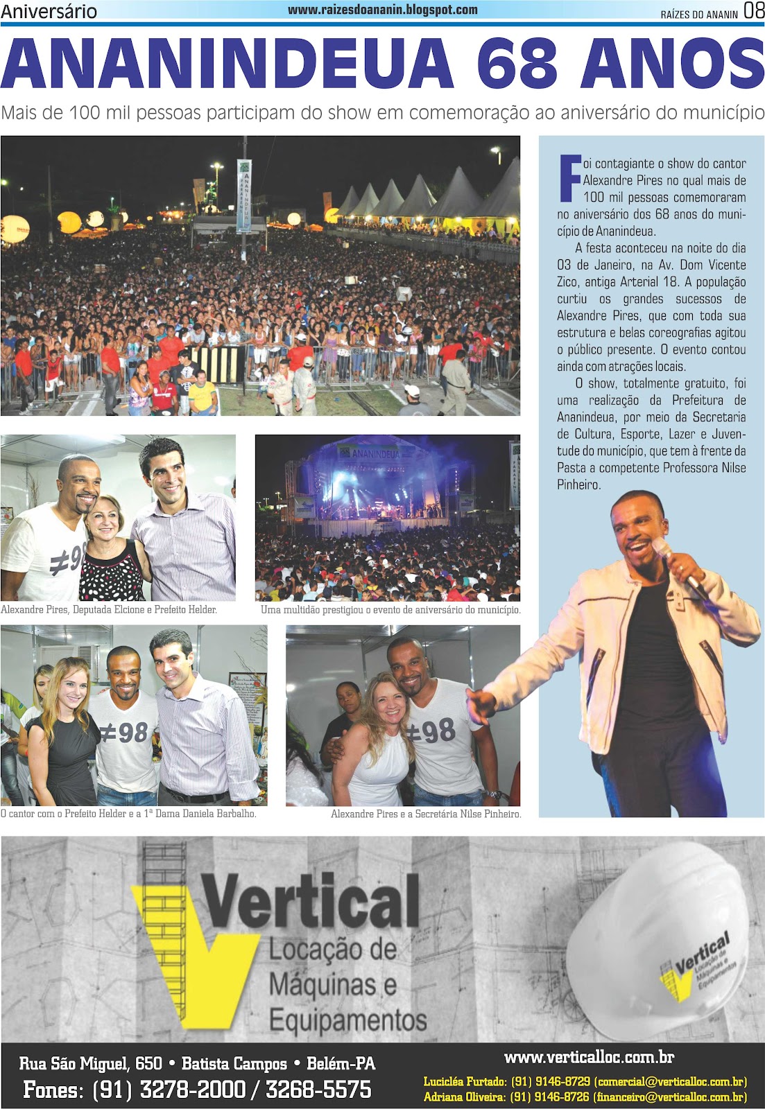 A Prefeitura de Ananindeua, através da Secretaria de Cultura, Esporte, Lazer e Juventude do município, realizou na última quinta feira, 22/03, uma belíssima recepção para receber a ministra de Cultura Ana de Hollanda. Ela foi ecebida pelo prefeito Helder Barbalho, secretária de cultura, profª Nilse Pinheiro, deputados e vereadores, agentes culturais, artistas, representantes da Comunidade Quilombola de Abacatal. A ministra almoçou no restaurante Pingarilho, bastante conhecido e popular no município. Logo depois, seguiu com cortejo cultural, do Boi de Máscara Vaidoso, grupo Ananindance, Capoeira Santa Maria, até o Parque do Seringal onde assistiu várias apresentações culturais de música e danças de grupos como: Maianá, Marujada São Benedito, Juliana Franco e outros. Durante a Cerimônia, anunciou o Programa Usinas Culturais, que irá beneficiar a Comunidade do Abacatal, as duas praças dos Esportes e o Espaço Mais Cultura. Ela disse que já foram repassadas as verbas e que as obras começaram imediatamente.